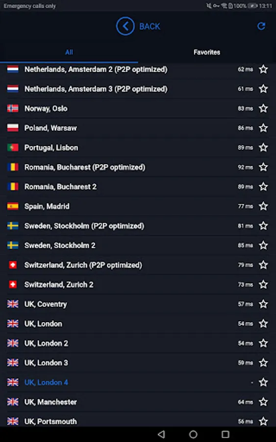 Ultra-fast gigabit servers located in over 20 countries on 4 continents ensure very good latency for mobile connections.