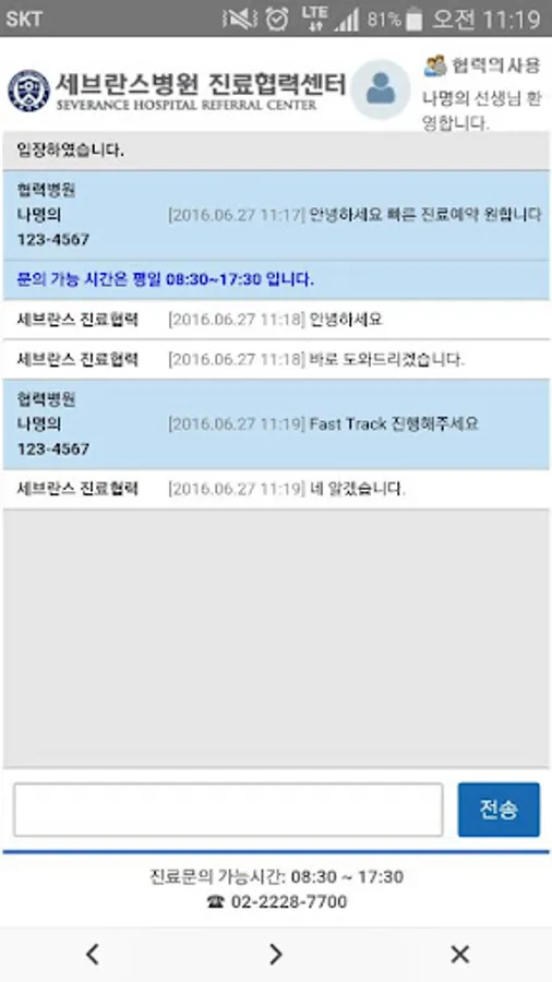 각 기관들의 진료 의뢰 및 진료 결과 조회가 가능하며 진료협력센터와의 1:1 채팅과 회원 공지 사항 확인이 가능 합니다.