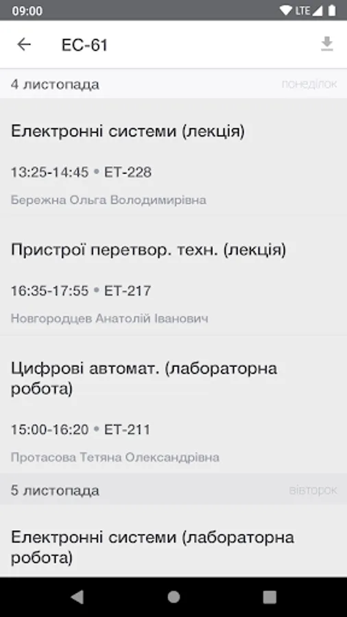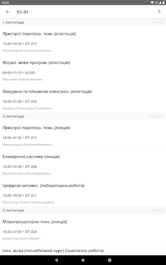 Download schedule for all groups, professors and auditoriums you need and use it offline.
