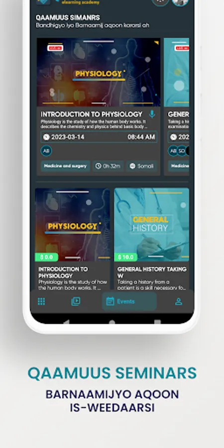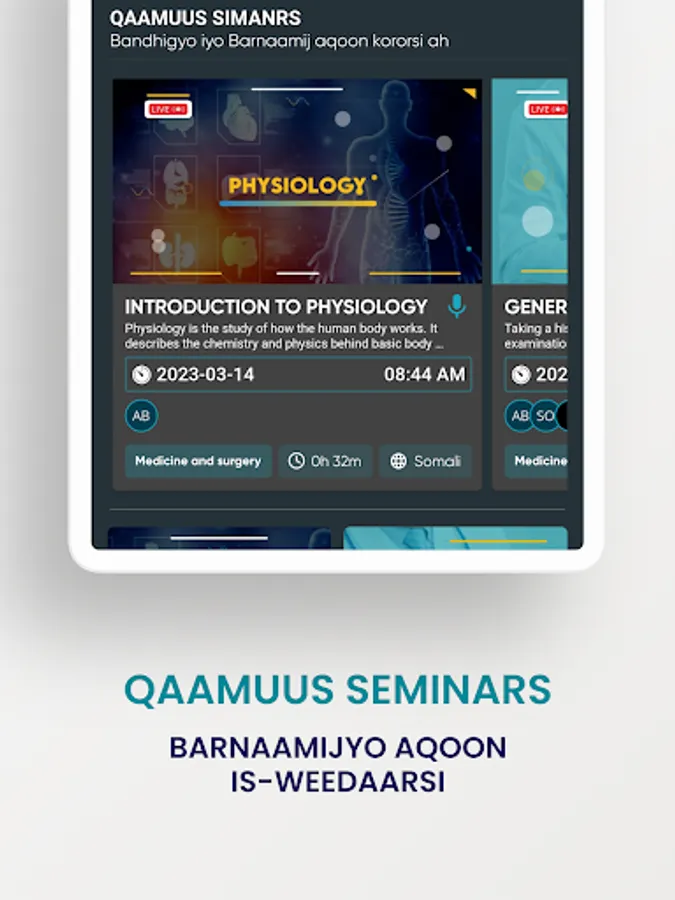 Akaademiyadda Qaamuus: waa goob waxbarasho oo ku shaqaysa hab elektarooni ah, kuna baxaysa si fogaan dhigad ah (Elearning), taas oo loo gu talogalay, kobcinta iyo kor u qaadista aqoonta ardayda iyo barayaasha labadaba. Iyo sidoo kale u carbinta iyo u diyaarinta ardayda jaamacaddaha ka qalinjebisa sidii ay u abuuran lahaayeen shaqo ama loogu heli lahaa shaqo. Si taas loo gaadho wax ay akaademiyadda Qaamuus bixinaysaa casharro iyo tababarro ay fulinayaan khubaro iyo barayaal sare (Professors) kuwaas oo ka kala socda dalal ka la duwan, aqoon xeeldheer na u leh, laamaha cilmiga ay ee ay bixinayaan