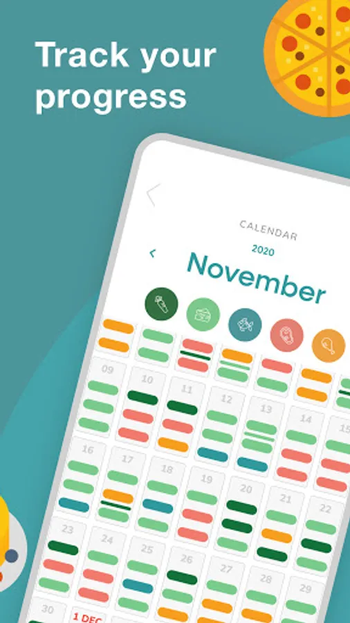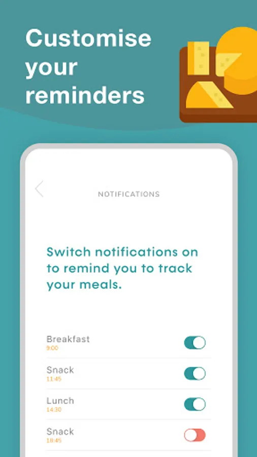 A single tap each mealtime allows you to track your breakfast, lunch and dinner and any snacks with one of five food categories.