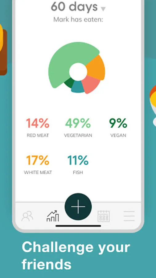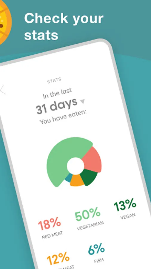 Choose from red meat, white meat, fish, vegetarian, or vegan each time you eat, and the app gives you a percentage spread over a date range of your choosing.