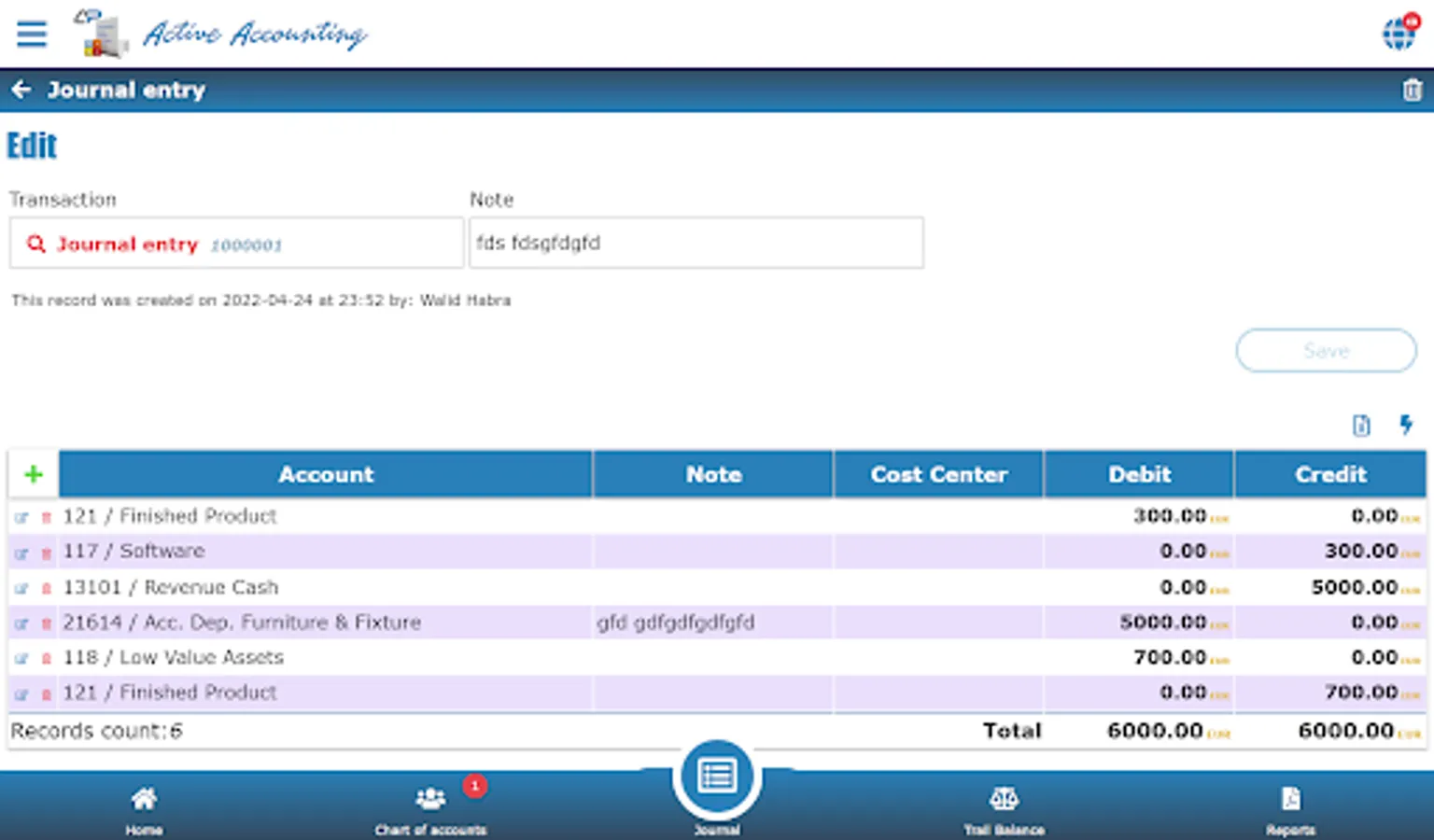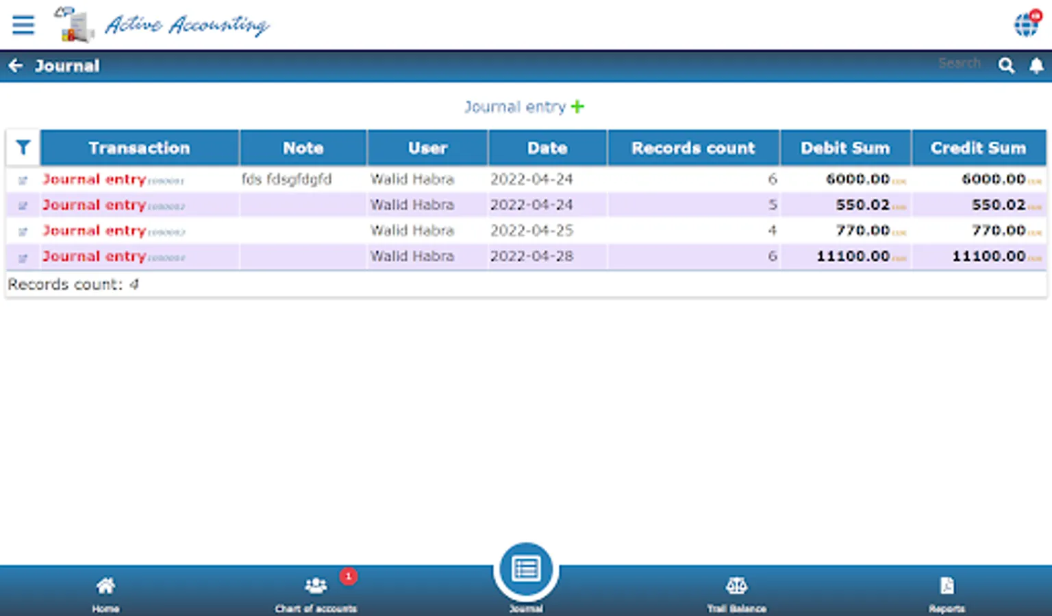 Import journal entry content from excel.