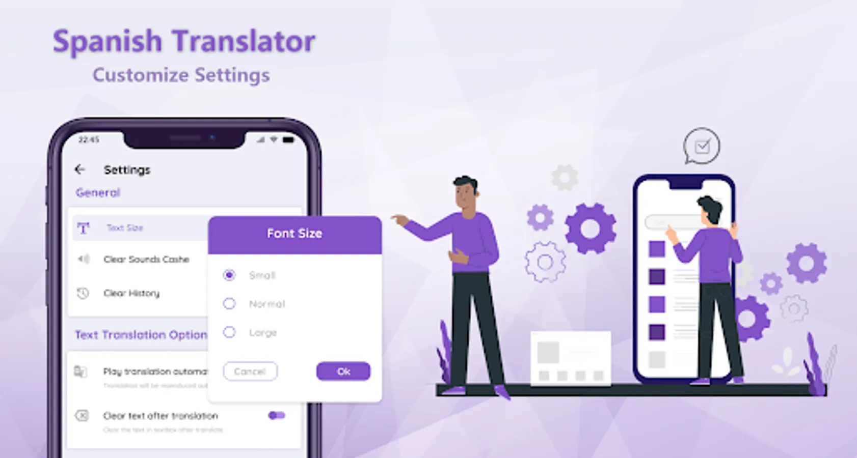 You can choose the size of your text according to your choice. Some people have eyesight problems, and they cannot see small text easily. So this English to Spanish Translator-Language translator is the best app for those. They can set the text size as large or medium according to their choice.