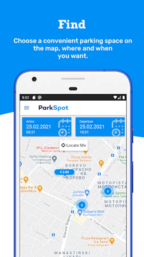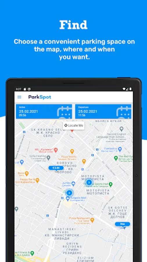 ParkSpot offers you the opportunity to find a safe parking space for your car in seconds. Download the application, choose the most convenient location for you, and then just park and enjoy your day.