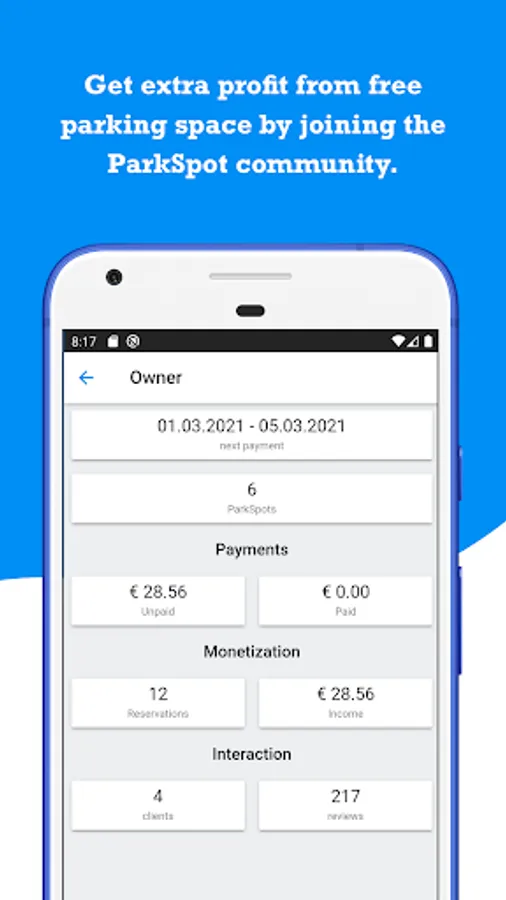 Have you ever thought how many moments you miss while wondering where to park? Our mission is to save your time. ParkSpot guarantees you a safe parking space for your car - whenever and wherever you want it. The parkspot has never been so close - just a click away.