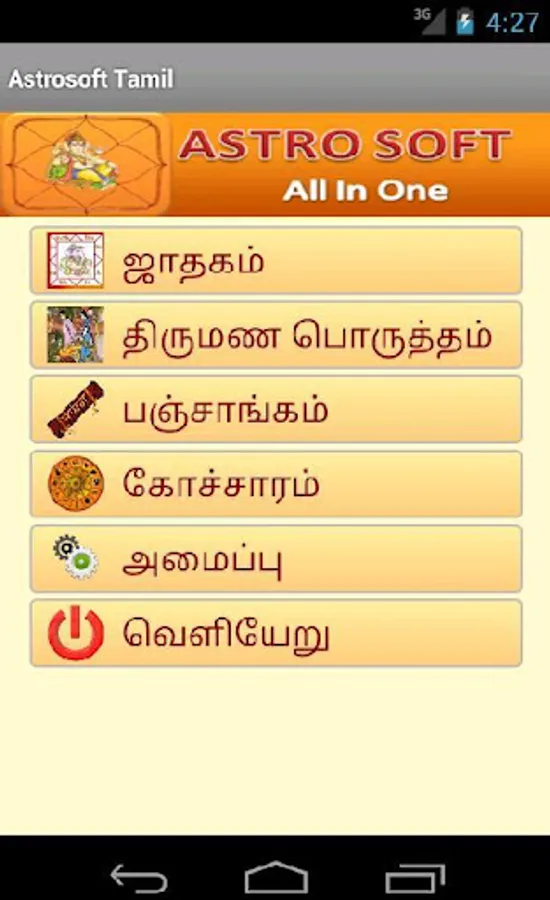 AstorSoft-All In One : Tamil is most powerful and accurate astrology software based on Indian Astrology / Vedic Astrology / Hindu Astrology / Jyotish in Android Market.