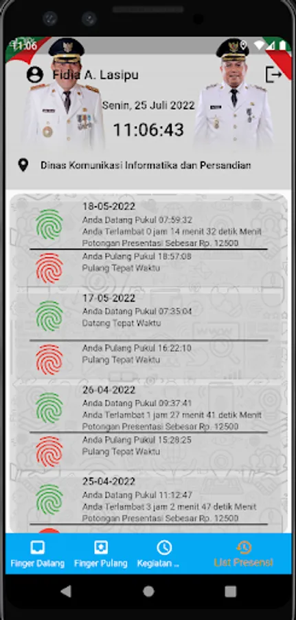 Presence application for freelance daily workers and experts in the district government. North Bolaang Mongondow