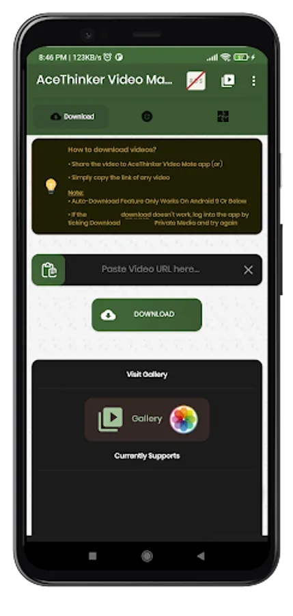 If you're looking for an app to download your favorite videos online for watching on Android devices offline, you can give AceThinker Video Mate a try. It's a smart Android app that allows you to download virtually any video from many popular video streams like a breeze. You can grab video and audio from mainstream video sites, TV shows, animes, homemade videos, music videos, learning courses, gameplay recordings, sports, news, or any other type of media content, this professional but easy-to-use Android video downloader will let you download the videos you need in seconds.
