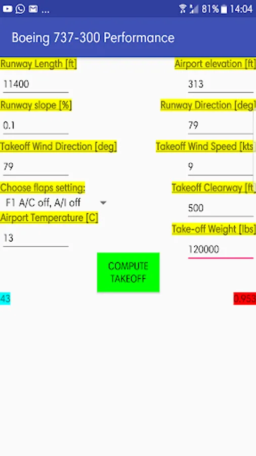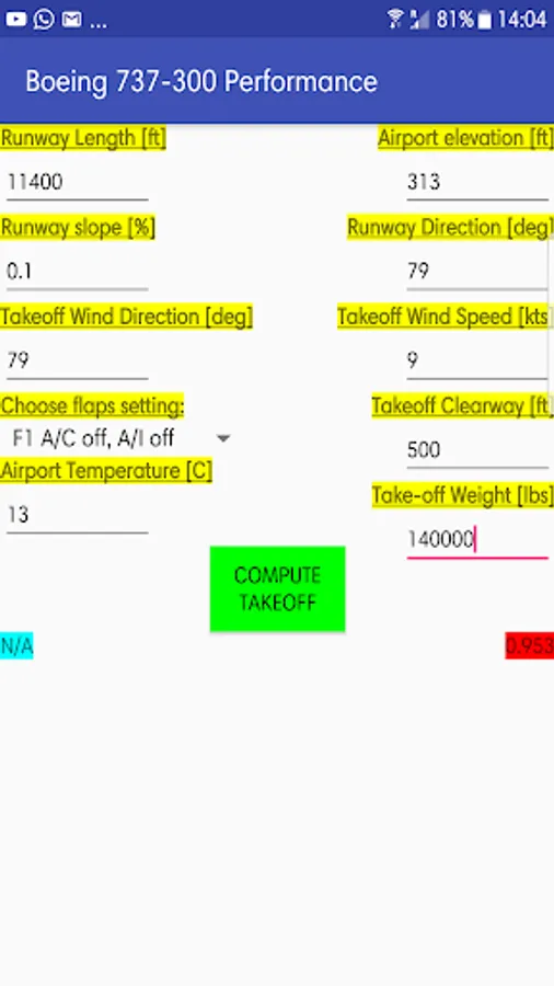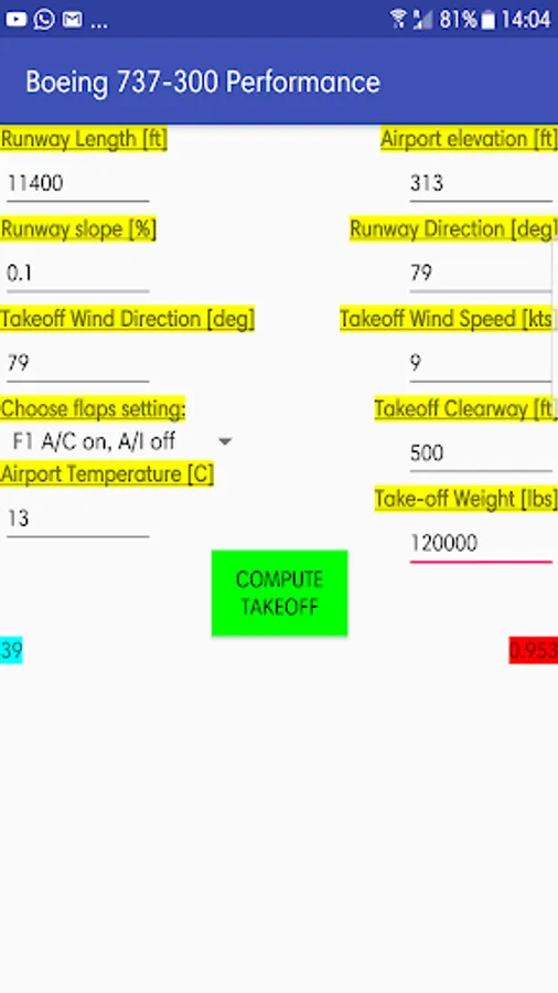 This is a phone app made to compute take-off performance for the Boeing 737-300 aircraft equipped with the 20K engine variant for virtual flying.