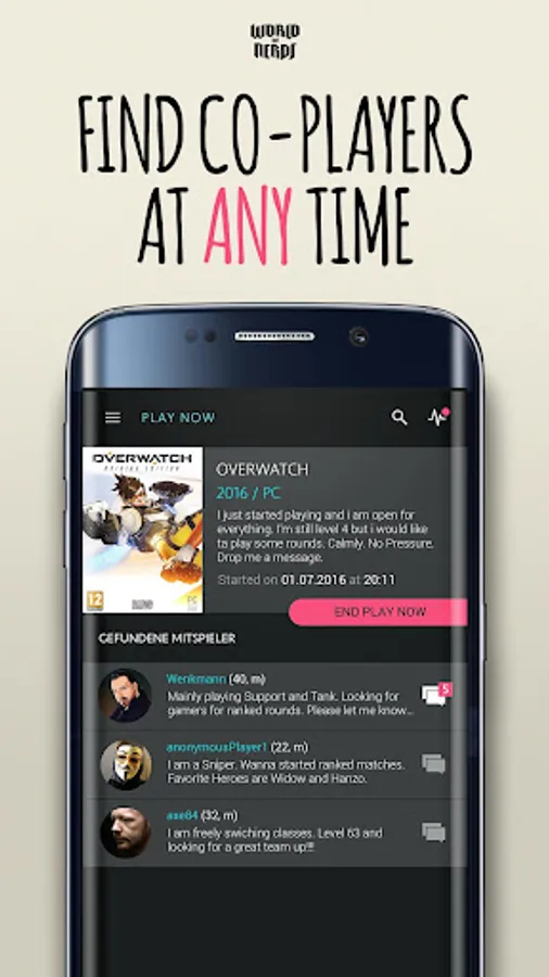 Our „Watcha“ helps you find these people. You yourself decide who suits you the best. At first you should pick and gather your favorite games so other users with similar interests will be recommended to you. Once both of you endorsed each other you can easily chat or arrange your future gaming session by using our „Organized Play“ feature. Give it a try!