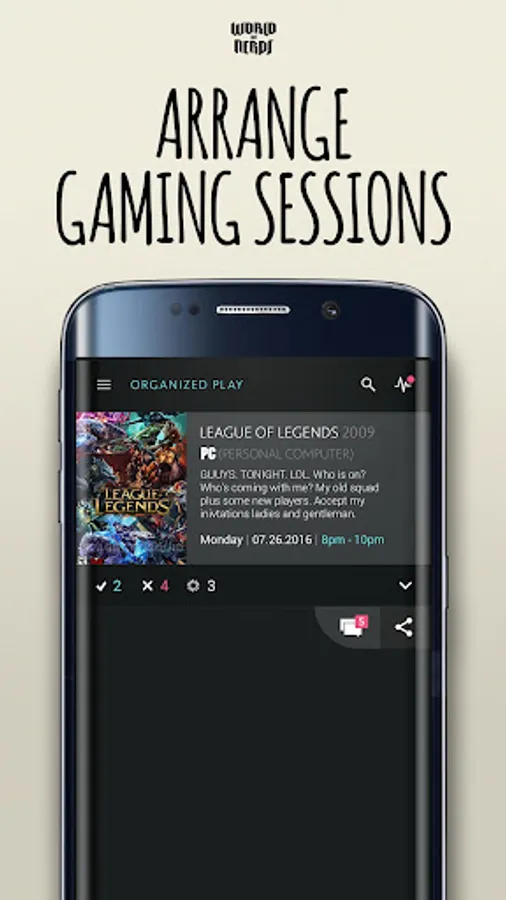 Your current gaming squad is looking for new companions? The „Organized Play“ feature gives you the opportunity to connect and befriend old members with new found players at any time.