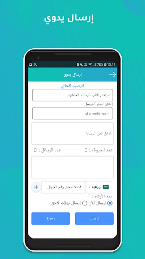 - ارسال رسائل للارقام الموجودة في جهاز الموبايللل