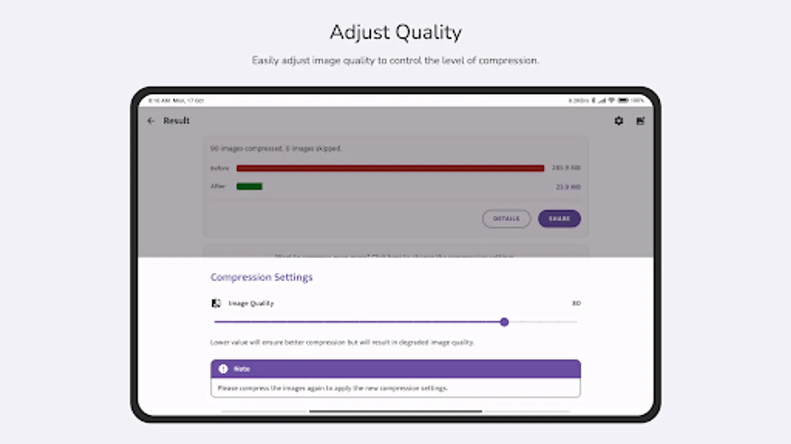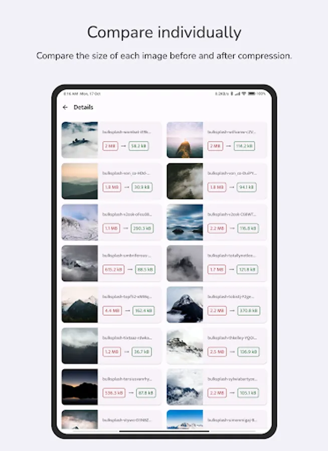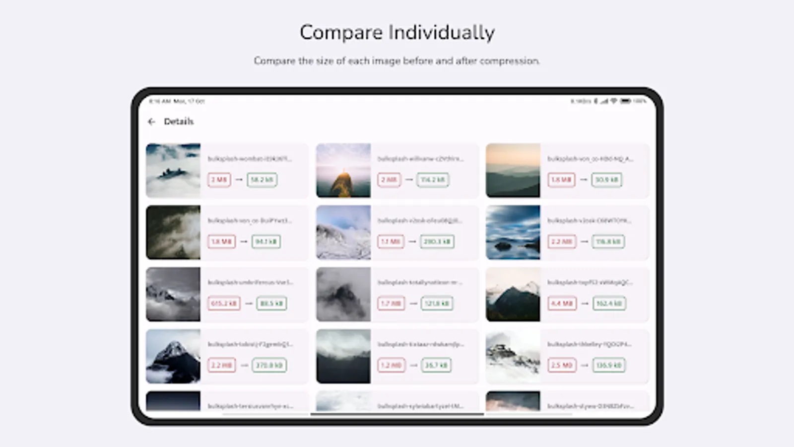 Compress photos and resize images hassle-free using the Image Compressor app.