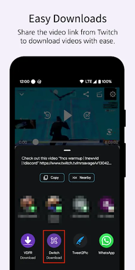 4. Choose Dwitch from the list of apps to automatically download the video from the post.