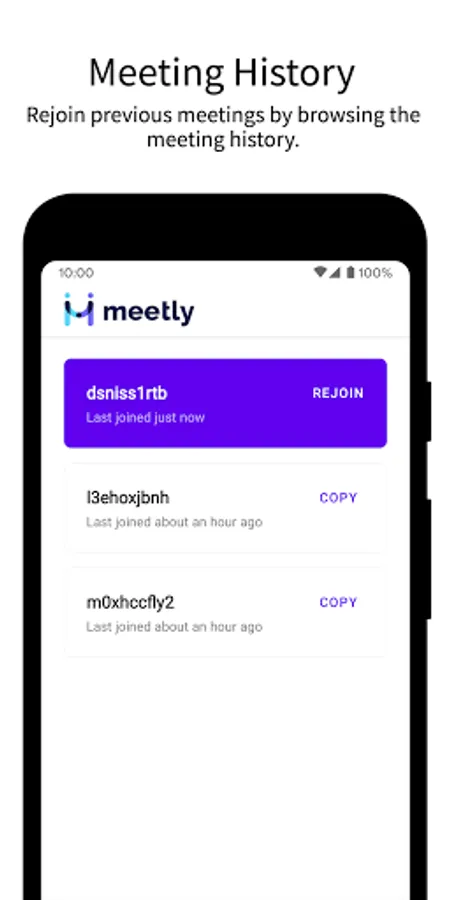 • Join meetings by pasting the meeting code inside the app.