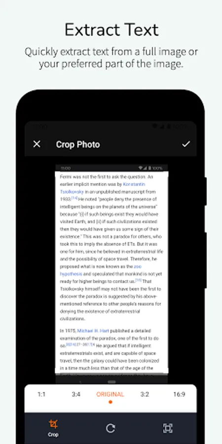 Convert your phone into a text scanner using this app. This app enables you to perform OCR (Optical character recognition) on your phone and allows you to easily scan text from images. STR is a free OCR app to scan text from your images.