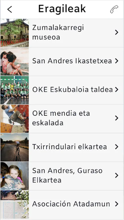 - Multimedia: photos and videos of local activities, classified into folders.