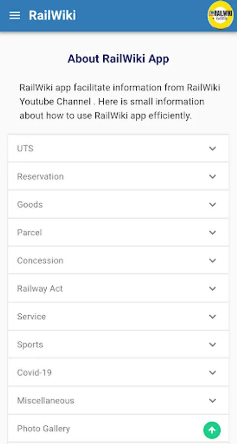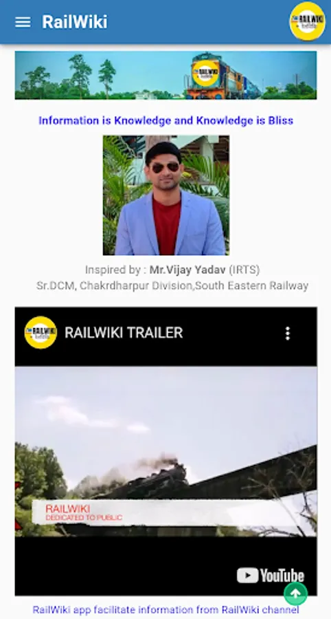 RailWiki app has been created to give various information related to Rail. RailWiki app facilitate information from RailWiki channel