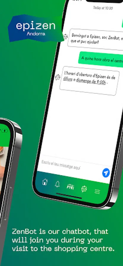 ZenBot is our chatbot, that will join you during your visit to the shopping centre. It will help you with any doubts you may have and will provide you with all the information of the shopping centre such as business hours, location details, services and opening days.