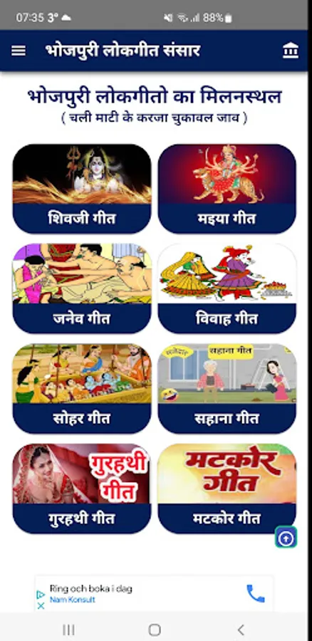 Content provided in the Bhojpuri LokGeet Sansar app is available free on public domain. We are not claiming copyright of songs, bhajan, audio, video, text, photos used in app.