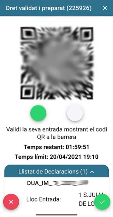With the MIL user in Andorra, you will be able to manage your declarations, generate a right to dispose and validate it at the exit barrier.