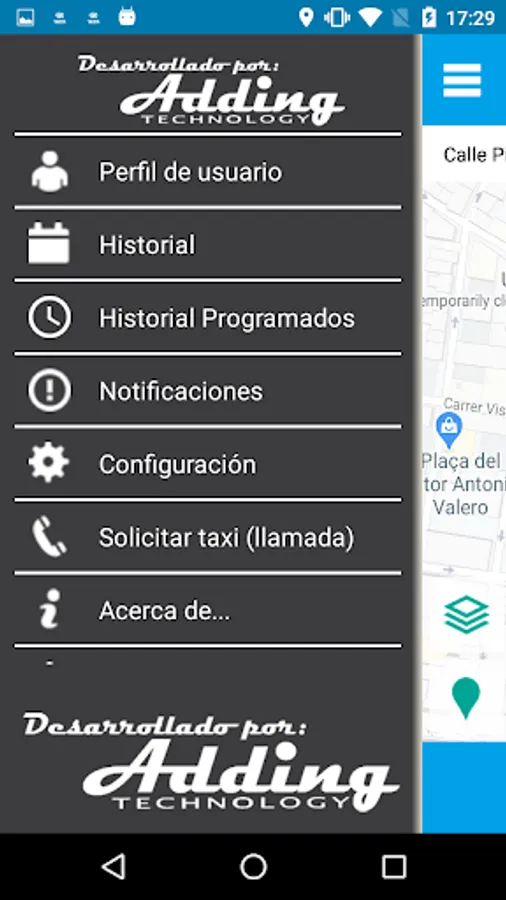 Application intended for the passenger of Taxi associations and companies. It is an application that will be personalized for each association / company with its logos, colors, etc., and which is integrated with the central system that covers all the activities of running a taxi service.