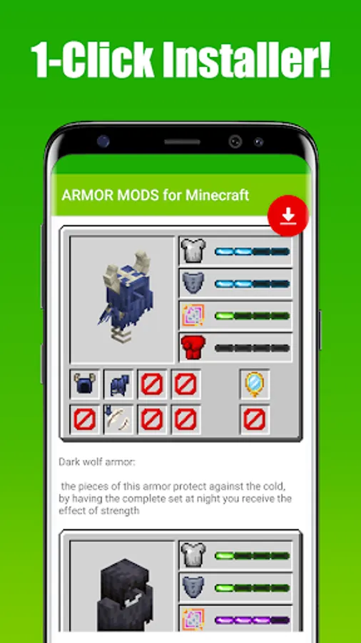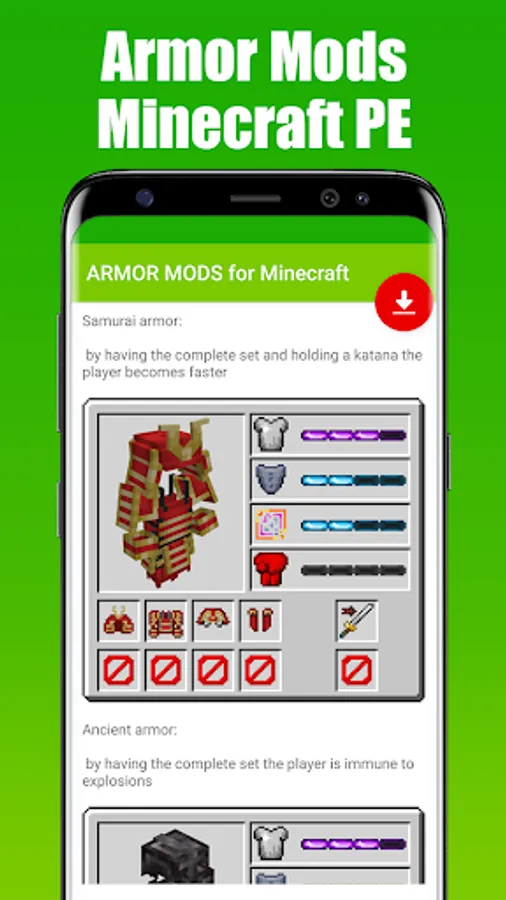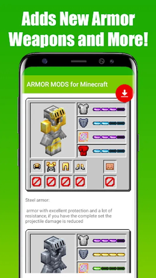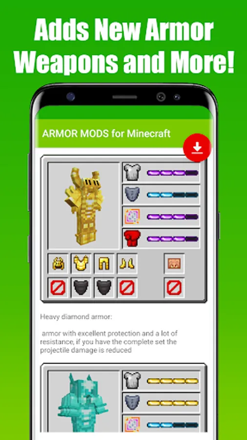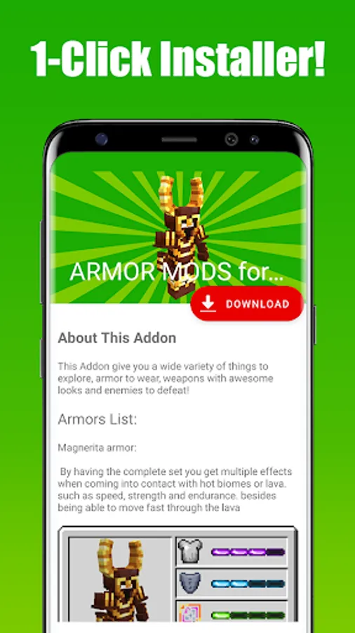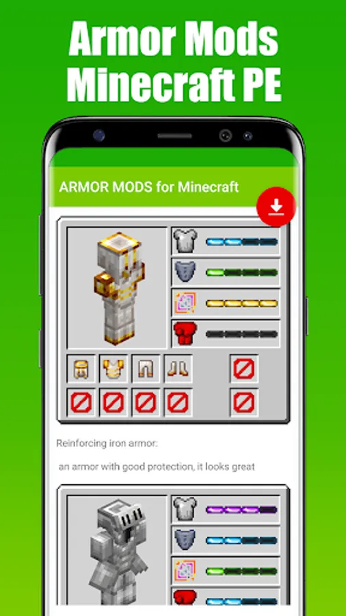 Armor Mods for Minecraft PE is an application that allowed you to download & install a fully functional Armor Addon to your Minecraft World in just 1 single tap!