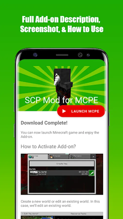 SCP Mod for Minecraft PE is an application that allowed you to download & install a fully functional SCP Addon to your Minecraft World in just 1 single tap!