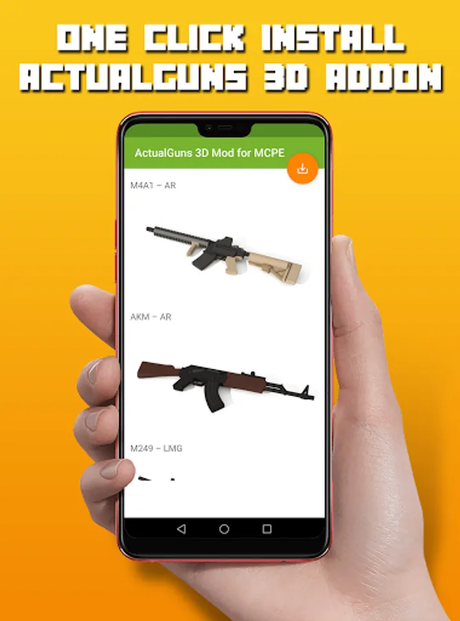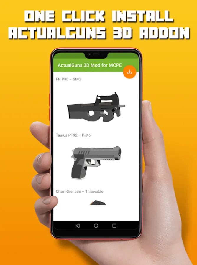 ActualGuns 3D Mod for MCPE is an application that help you install ActualGuns 3D Multiplayer Addon to your Minecraft PE game in one single tap! With this gun mod for Minecraft Pocket Edition, you'll get many new 3D weapons added to your Minecraft world such as Taurus Pistol, M3 Shotgun, P90 SMG, M249, and all-time famous AWP Sniper! Hope you enjoy the new guns mod!