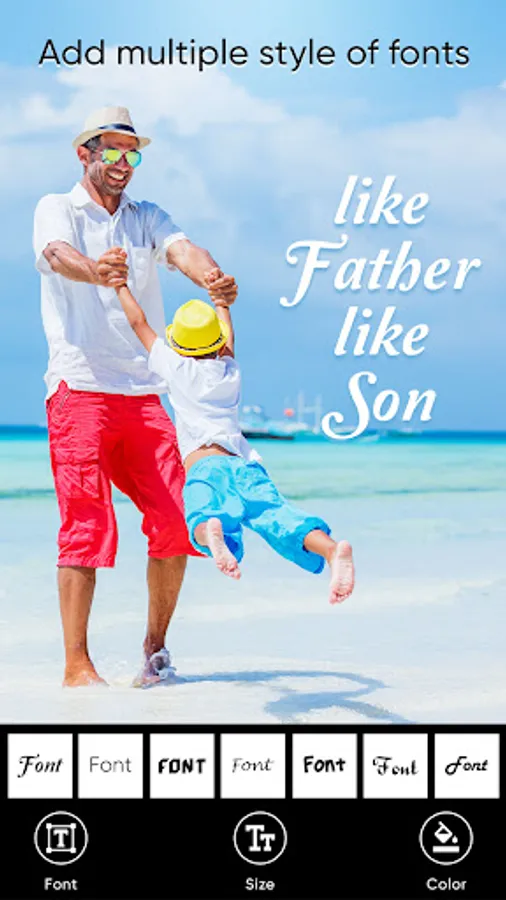 Add Text to photo is an effective photo text editor to add words to your pictures. With a text photo editor, you can quickly take a selfie and put words on pictures. Write text on your photo with font and style, edit, design to generate memes, posters, captions and more. Fit the words in the image perfectly, using built-in fonts, customize the size, color, position, etc.