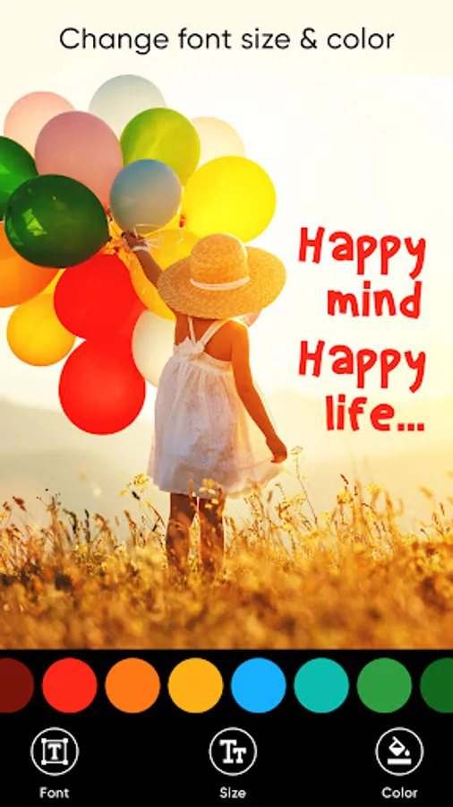 Write words on pictures easily using the good features of this free text photo editor. Use this photo text editor to add words to photos quickly to express feelings. Type text on image to convey a message with this new text editor on image. Add words to pictures to wish your dear ones on special occasions using this picture quotes app.