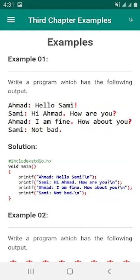 For better understanding this app includes about more than 70 useful examples and has a part for testing and a part for resources.