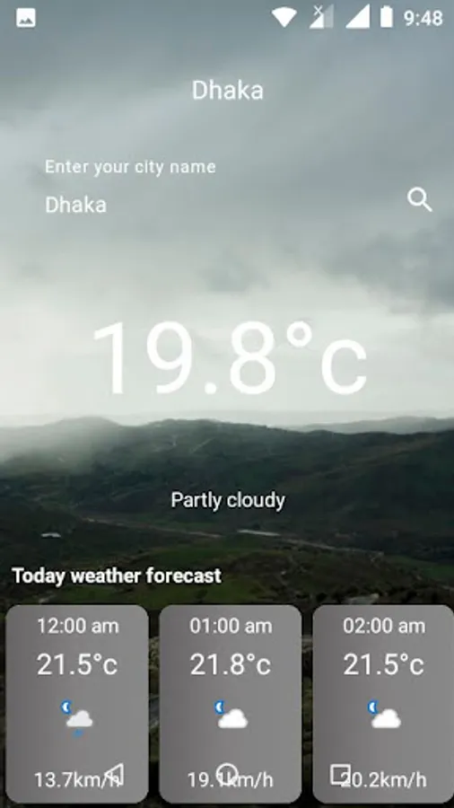This weather app is a globally supported app. It provide your device location weather information and 24 ours forecast suggestion. You can also search any city's weather and temperature easily.