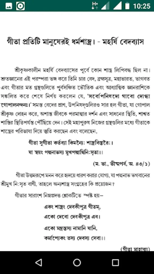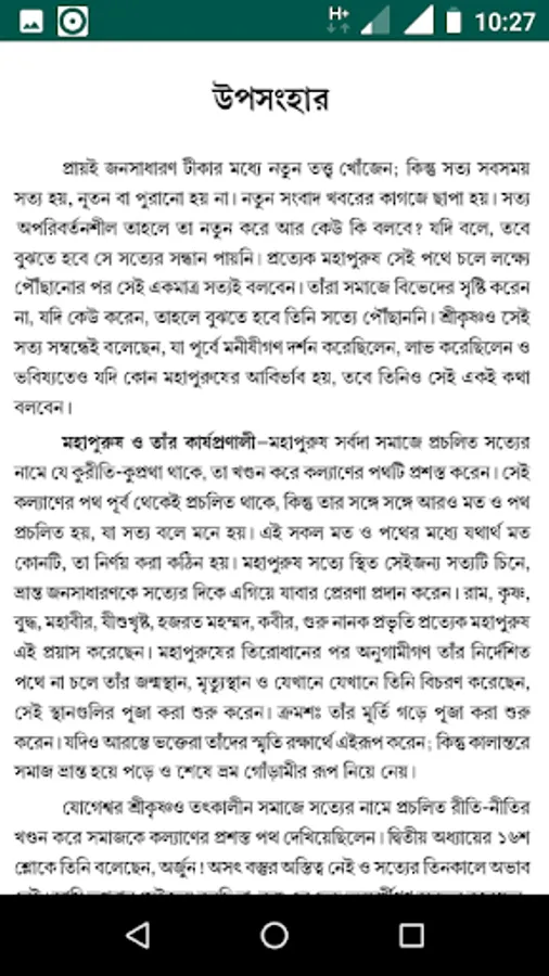 That is, the only scripture is the Gita sung by Devakiputra Bhagavan Srimukhe. I will give one worthy of receiving. The truth that is said in that singing is the soul. Nothing is eternal except the soul. What did Mahayogeshwar say to chant in that song? Oh. Arjun! That is the name of Akshay Paramatma. Chant and meditate in my form. There is only one religion, the only paramatman described in the Gita is the service of the paramatma. Hold him in your heart with reverence. Therefore the Gita is your scripture from the beginning. Thousands of years after Lord Krishna, the great men who have spoken the truth to the one and only God are the messengers of the Gita. The desire for all worldly and otherworldly happiness from God, to fear God, not to think of anyone else as God প্রত্যেক so far every great man has said; But the pursuit of God, to God, is only gradually secured in the Gita. Happiness and peace are gained in the study of Gita Shastra, along with this, this scripture also provides inexhaustible healing paramapada. Study to get the glorious annotations of the Gita The proper Gita.