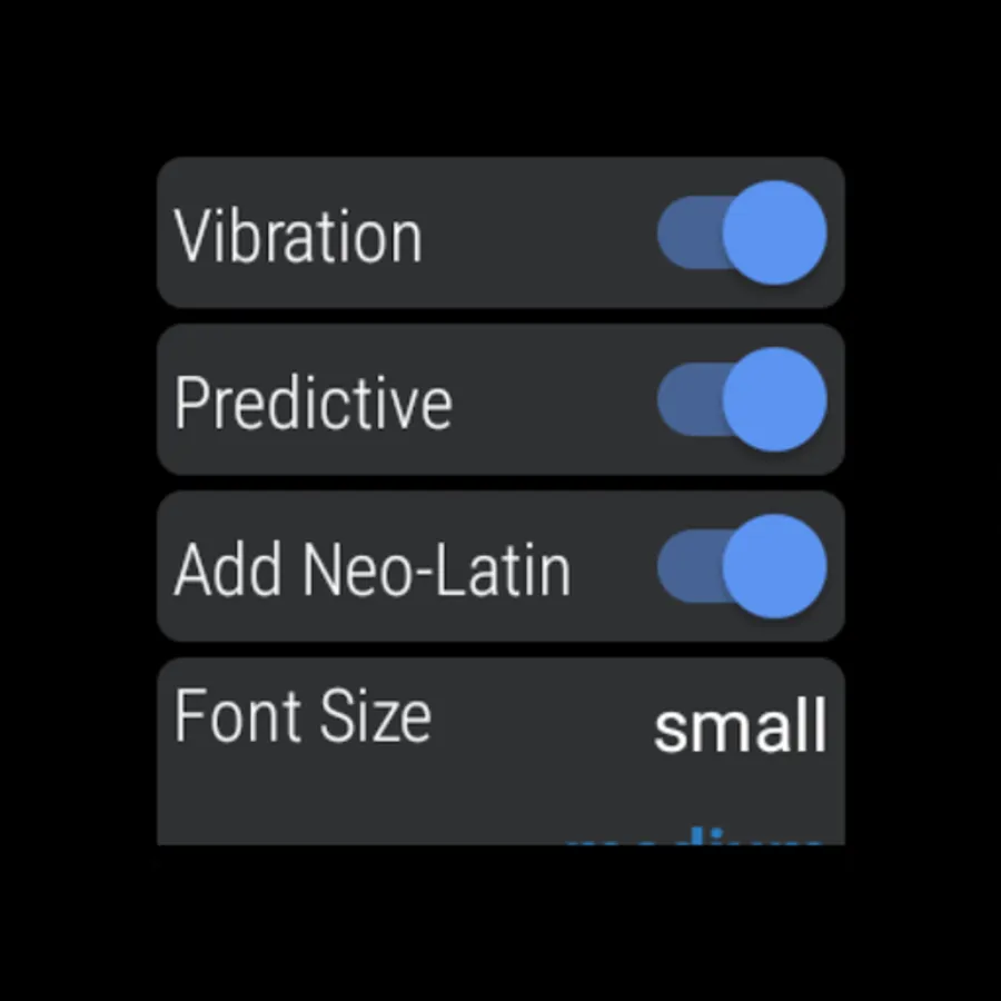 This is a Korean and US patented watch keyboard app that overcomes the size limit of a watch keyboard by using the entire watch screen as an input keyboard. The largest display window in the center of the watch serves as a multi-functional character input keyboard that not only shows the entered characters, but also allows text input and typo correction. The keyboard is arranged in alphabetical order, so it is easy for children or foreigners who are not familiar with QWERTY keyboards to use.