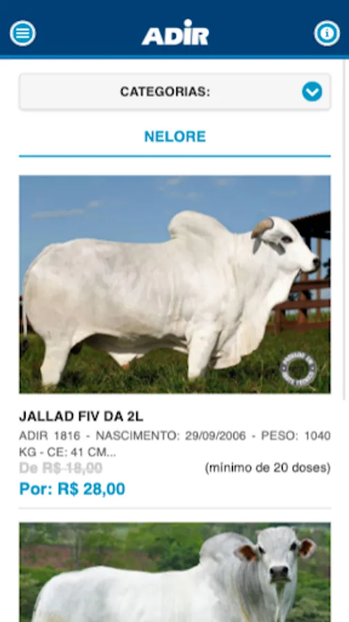 Subject to bank approval (via BB partnership) or cadastral approval (Direct Adir), minimum of 20 doses per breeder and the minimum total amount of R $ 3,000.00. Doubts or further clarifications contact us through the website or by phone.