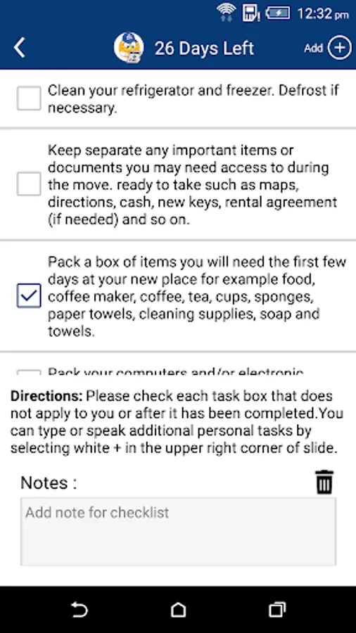 You'll love this app! It's free, easy-to-use, saves time and keeps your move organized. Besides the moving checklist organizer, there are other key features and important links to various moving resources or moving information. Our app includes: All-purpose moving tasks, with the capability of adding your own personal tasks. You can send self-notification reminders and email yourself a reminder list for printing. You can even record moving notes to keep any information you do not want to forget. Our box label printing feature allows you to print and outer box labels bearing the enclosed contents in your boxes (on 5168 Avery Labels). By using the labels on your boxes you can safely transport them and prioritize your unpacking. You can even sync your other smart devices.