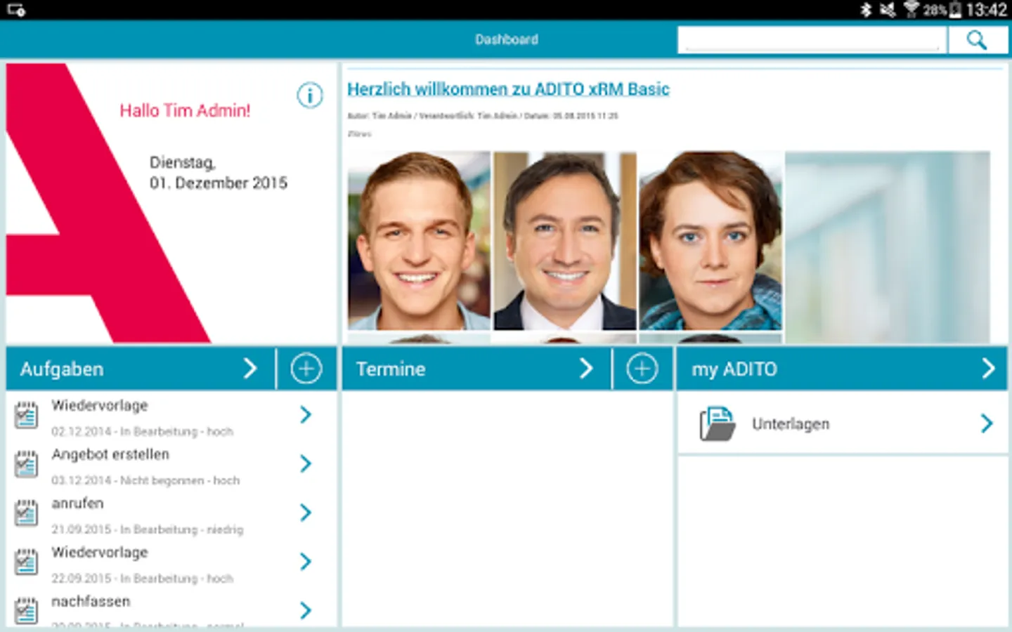ADITO4 mobile allows you independent and flexible access your corporate data. Enter details of the business relationship and record appointments and visit reports locally at the customer. All employees are thanks to the synchronization of client and ADITO ADITO mobile always up to date. Like the desktop version ADITO4 is ADITO4 mobile individually adaptable to your needs.