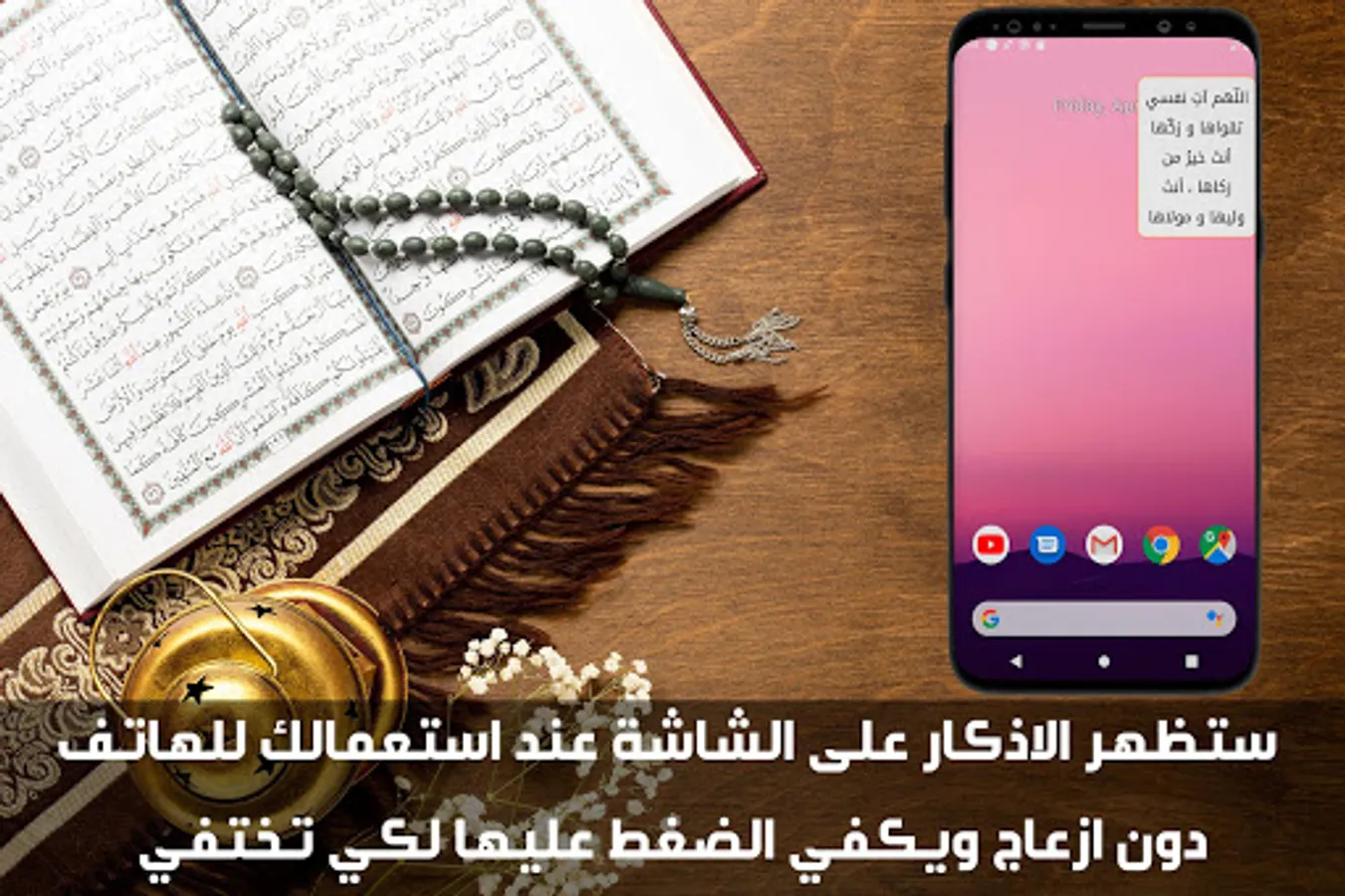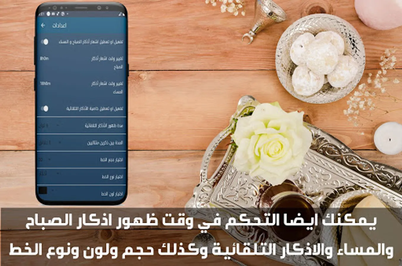 You can apply the morning and evening dhikr also from showing a group of dhikr on the phone screen that you can control by choosing the time it appears and the time between the appearance of two consecutive memories, as well as the size, color, type of font and many other features.