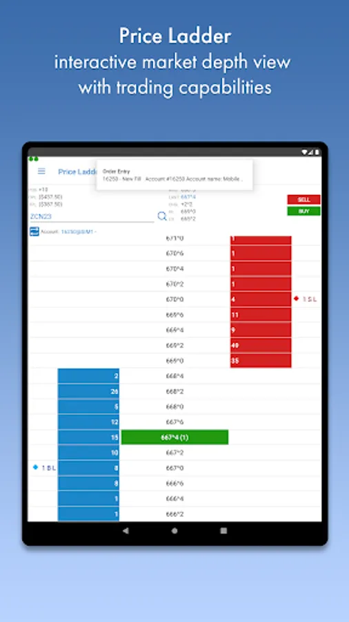 Price Ladder offers a real-time market depth view that highlights your relevant portfolio data in an interactive fashion.