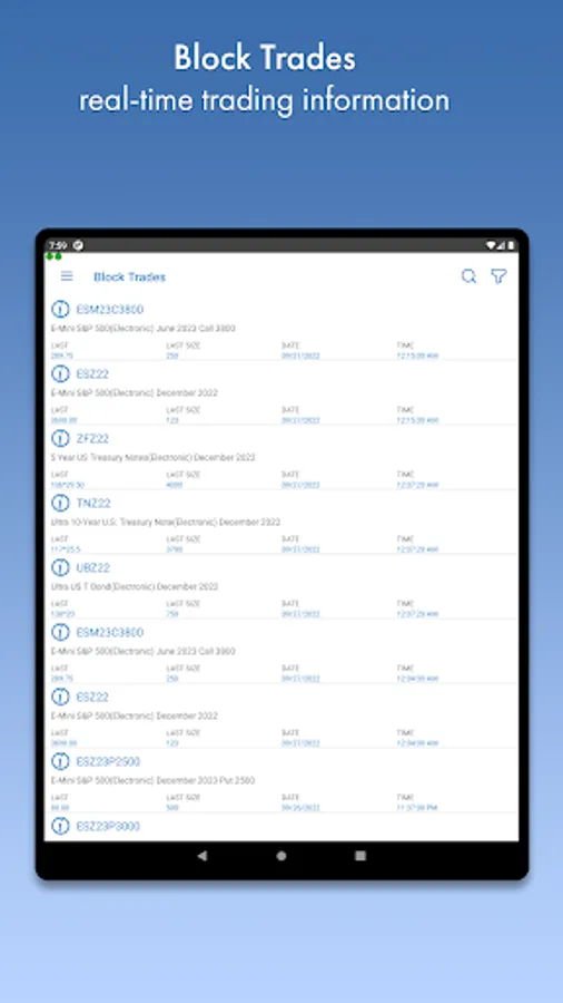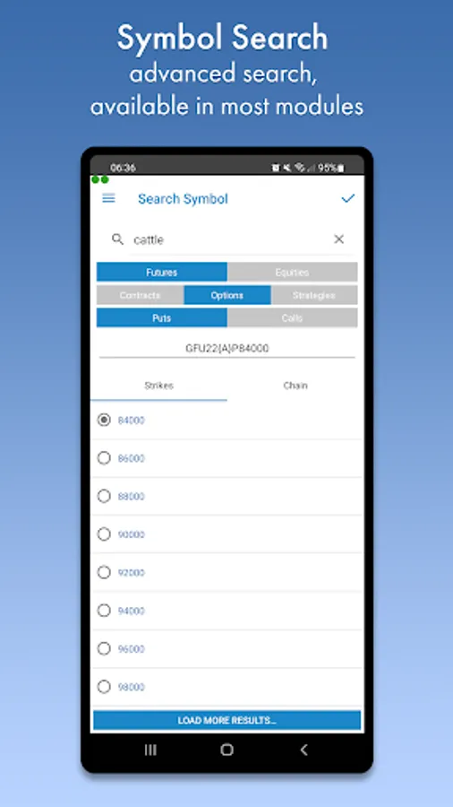 Options Chain can display all the options for any futures contract with the ability to trade individual options directly from the module.