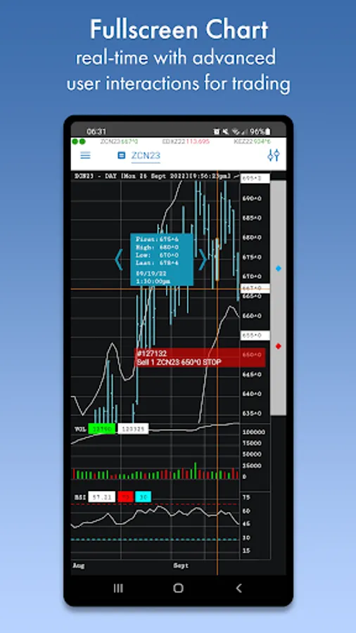 Full screen charts offering a wide selection of tools, settings and programmable indicators.