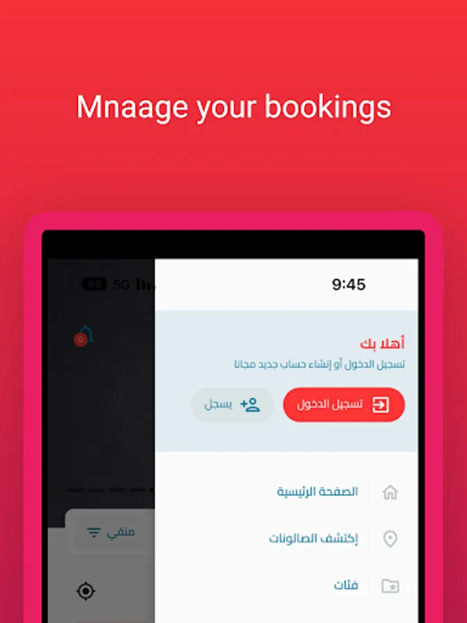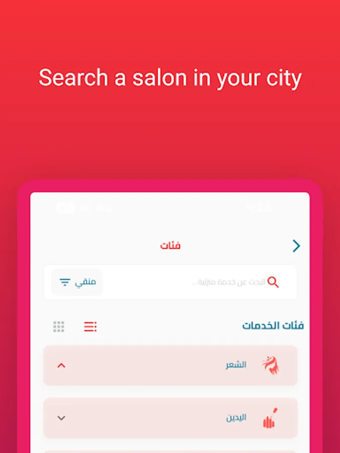 لـا اصحاب الصالونات اضيفوا صالوناتكم واديروا عمليات الحجز عبر التطبيق استلم الطلبات وتواصل مع عملائك بكل سهولة للباحثين عن صالونات تجميل قريبة او في اي مكان حمل تطبيقنا واستمتع بالخدمات المجانية