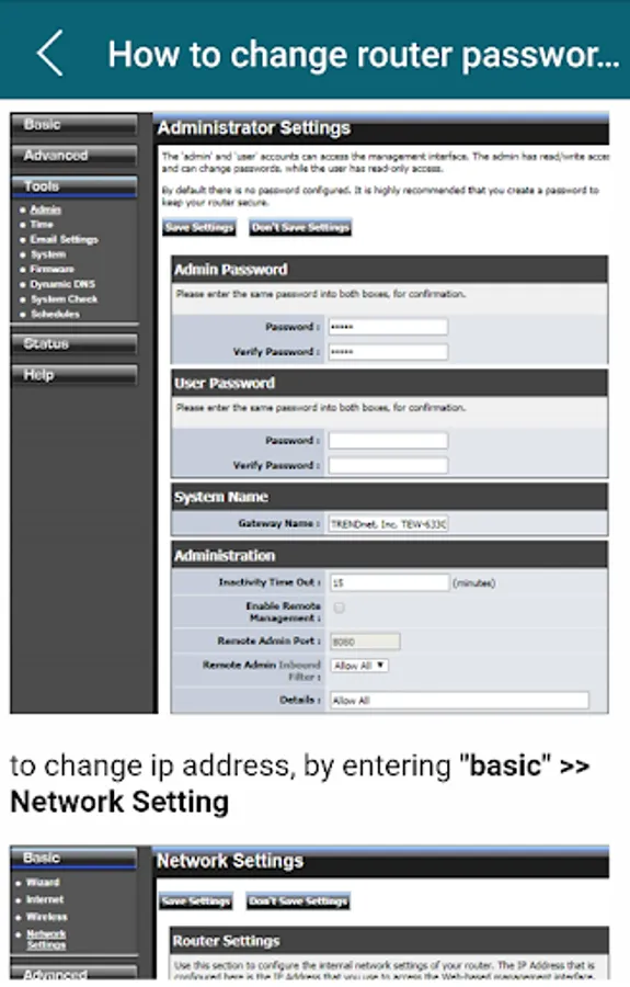 Our mobile app describes how to install and configure the Trendnet wifi router. When you purchase a new modem or forget your Trendnet wifi router password, you will need to re-install it. With the information in our mobile app, you learn how to make these settings.