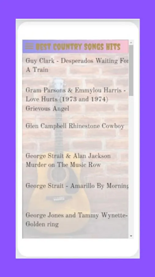 A collection of best quality songs from us that you can download for free by downloading the application titled contry songs hits: