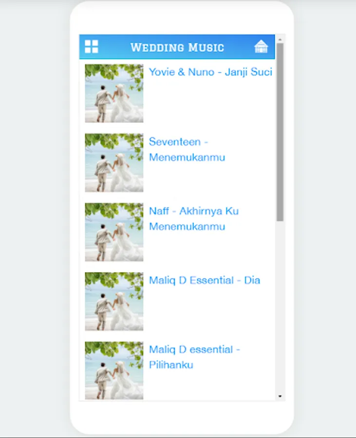 Wedding music is the best collection of wedding songs that you can try for free. Equipped with features that are very interesting and very helpful.