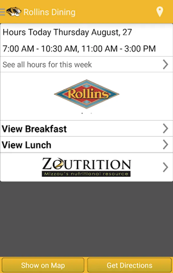 GoMizzou is a free Android app designed to bring University of Missouri information to your mobile device. GoMizzou provides access to the MU directory, an interactive campus map, news feeds, an events calendar, campus dining menus and feedback.