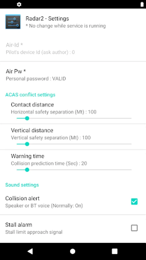 Radar2 is an Android app that can be used while flying on ultralight or microlight aircraft (LSA with or without engine, three-axle, hang gliders, paragliders, etc.) or on GA aircraft in uncontrolled airspace (G). It provides real-time information on the position and trajectory of others aircraft operating in the surrounding airspace and using the same application or compatible systems. The app is equipped with automatic detection of potential collisions in flight (ACAS) with voice alerts that communicate alarm situations. This feature can also remain active in the background while using other apps during the flight. The use of Radar2 therefore constitutes a valid support for VFR flights, increasing their safety.