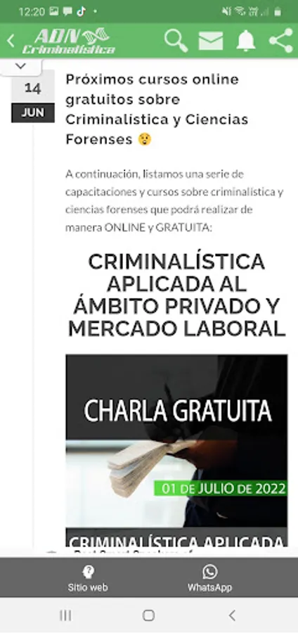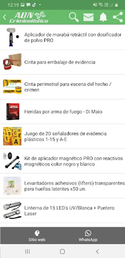 Official application of ADN Criminalística, a leading company in the market that provides forensic products, services and training.